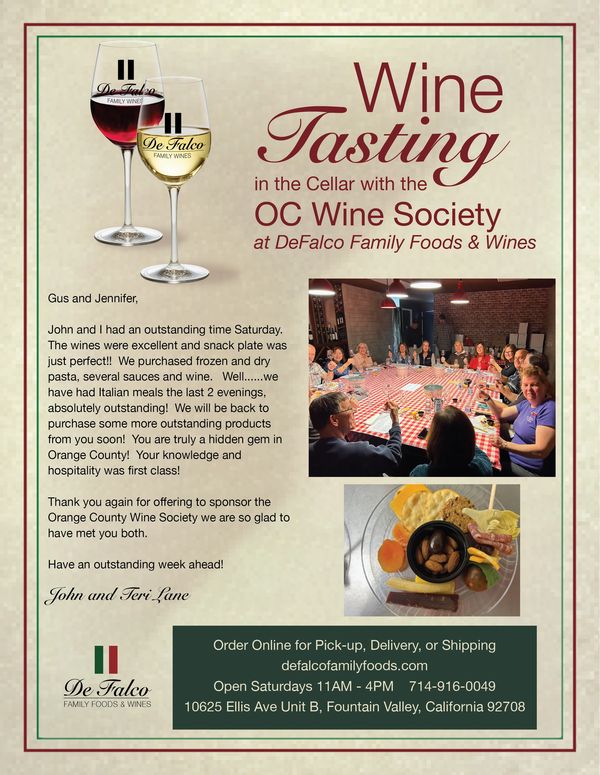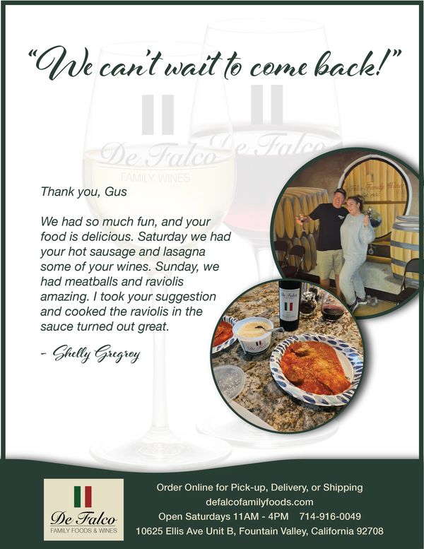 Our Award Winning Reserve Wines are hand-crafted by the "Wine-Dad", Gus DeFalco offering a variety of red, white, and sparkling wines that are sure to satisfy your palate. Remember, Italian style wines go best with Italian style foods, so pair with your favorite DeFalco Heat & Eat Italian Entree.